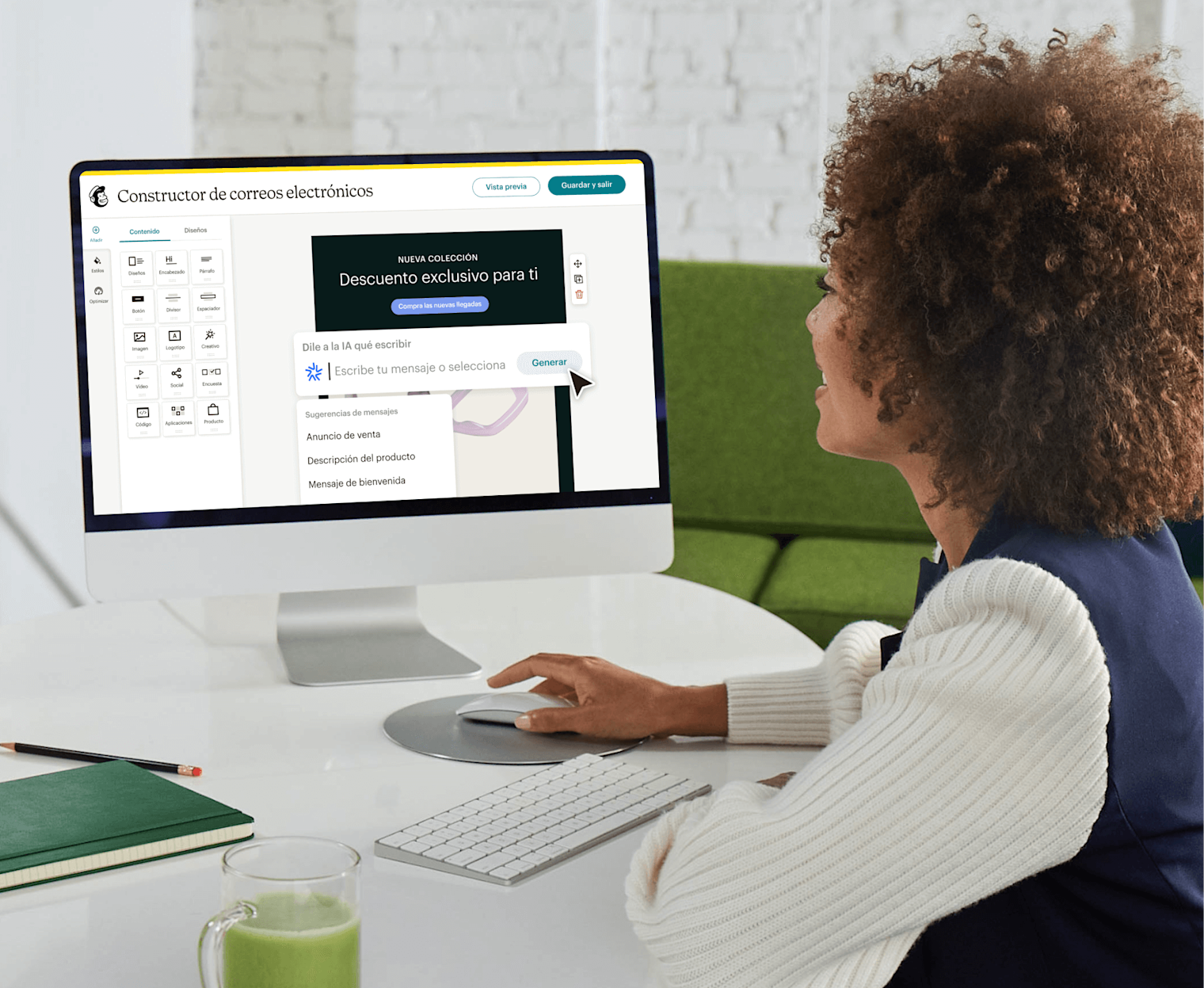 Obtén acceso a herramientas de email marketing gratuitas al crear una cuenta en Mailchimp. Con nuestros servicios de marketing por correo electrónico, puedes organizar rápida y fácilmente tu público, segmentar a los clientes, redactar y diseñar correos electrónicos, establecer preferencias de tiempo y activadores, así como evaluar tu rendimiento.