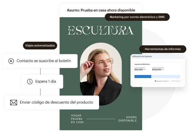 - ROI 30 veces mayor : según los ingresos de e-commerce atribuibles a las campañas de agosto de 2024 a agosto de 2025. El cálculo del ROI requiere una tienda de E-Commerce que esté vinculada a una cuenta de Mailchimp. Los resultados varían.