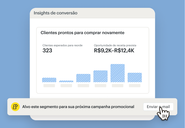 Aumente a receita agindo imediatamente com base no comportamento do cliente. Entenda quem está pronto para comprar e quando, para enviar mensagens bem programadas.