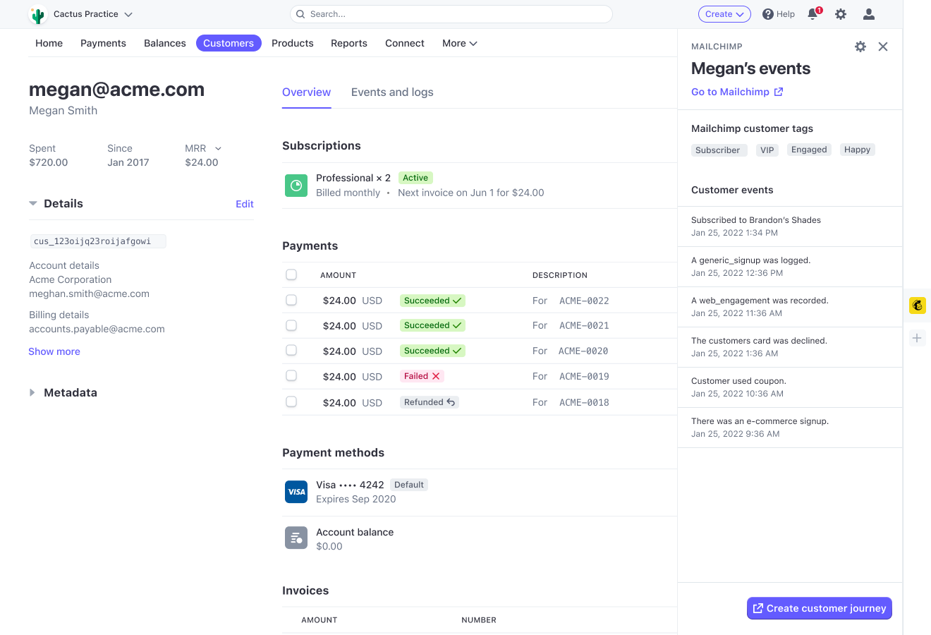 - Sync important customer details from Stripe to your Mailchimp CRM such as name, email, location, and more.
