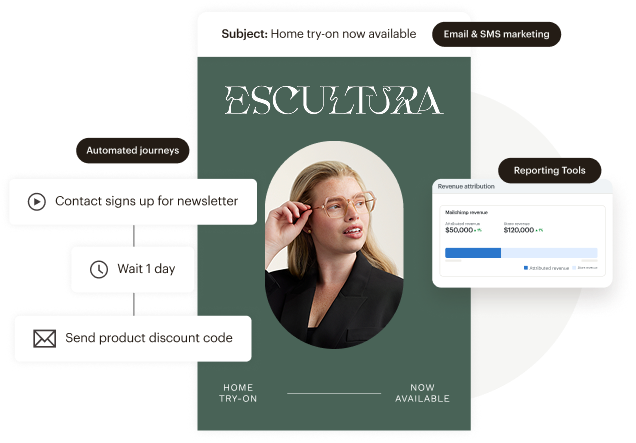 - 30x ROI: Based on all e-commerce revenue attributable to paid plan users’ Mailchimp campaigns from August 2024 - August 2025. ROI calculation requires an e-commerce store that is connected to a Mailchimp account. Results vary.